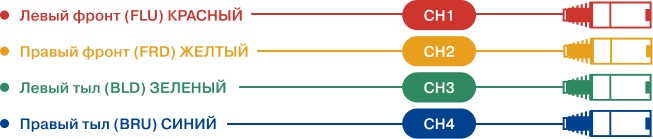 Для правильного подключения каналов каждый из разъемов имеет свой цвет: